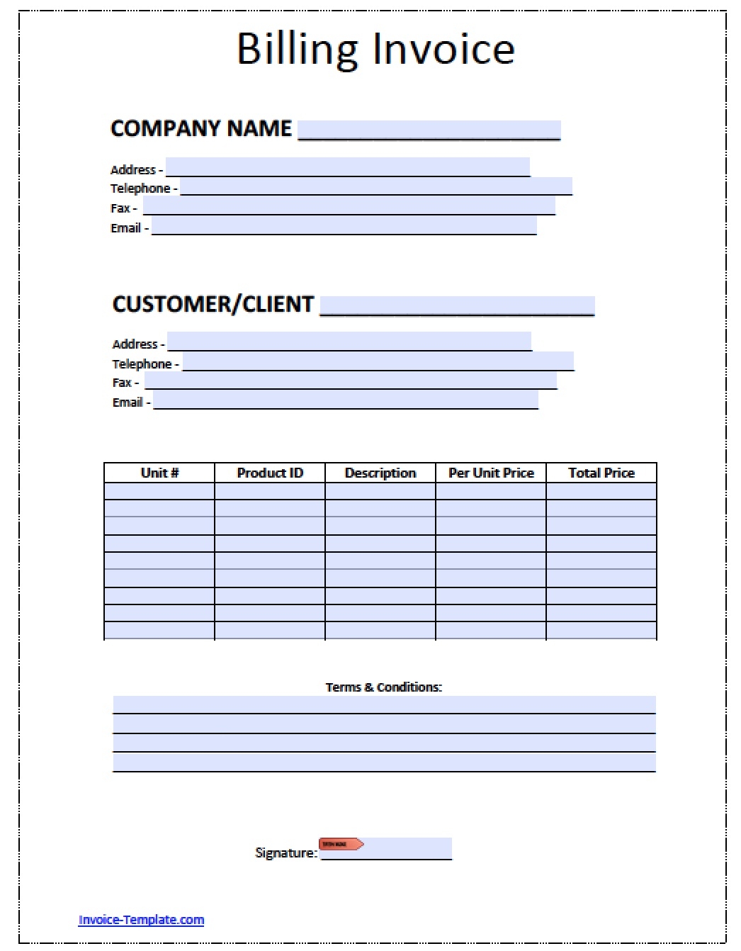 Download and Print Free Printable Billing Invoice Templates Listed below