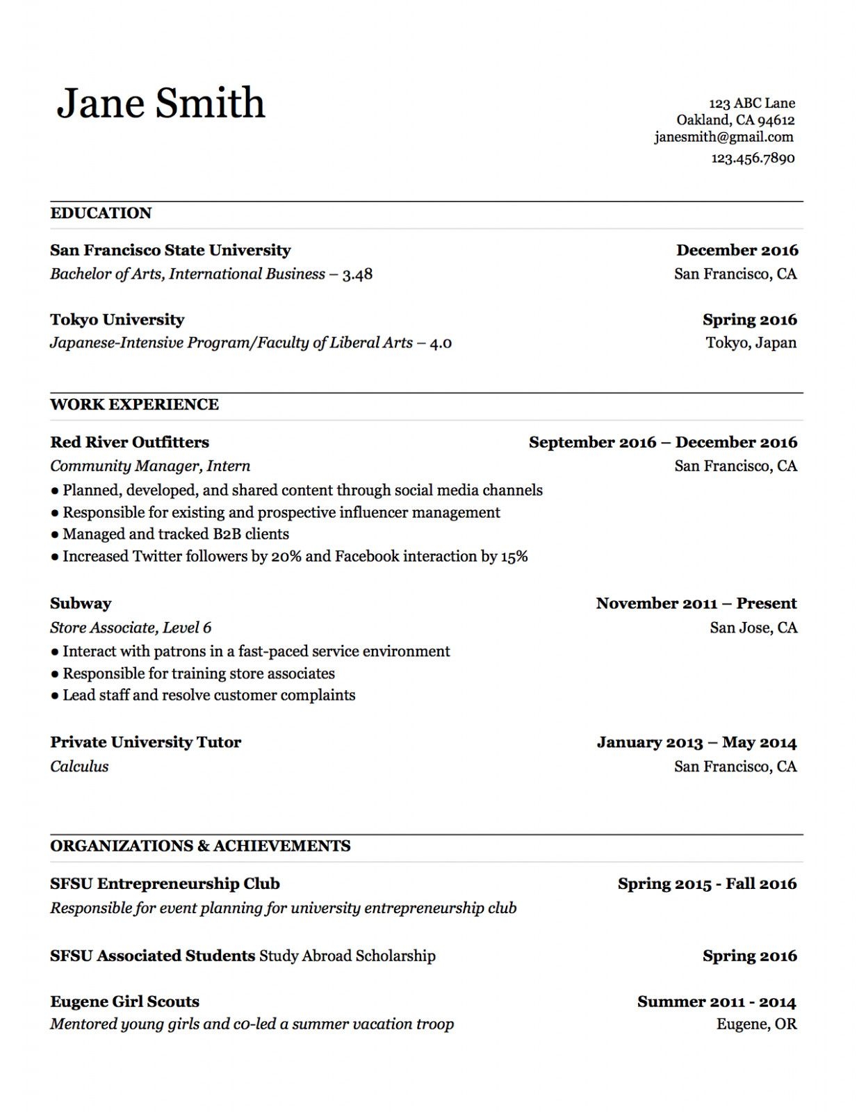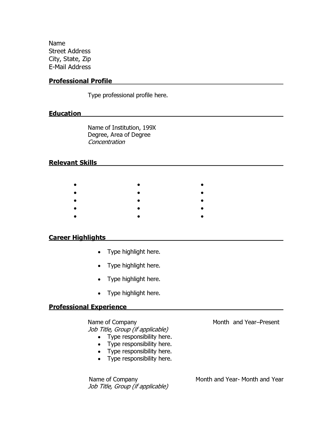 Sample Basic Resume Template