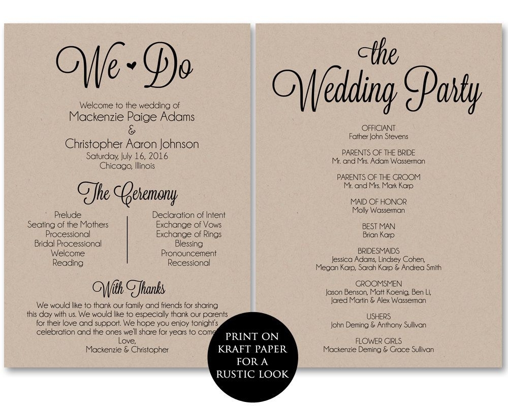 Ceremony Program Template Wedding Program Printable We Do Ceremony