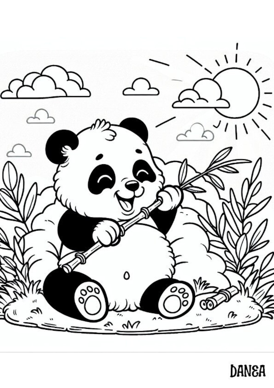 Panda With Bamboo Printable Coloring Page Kids Printable Coloring Page Etsy