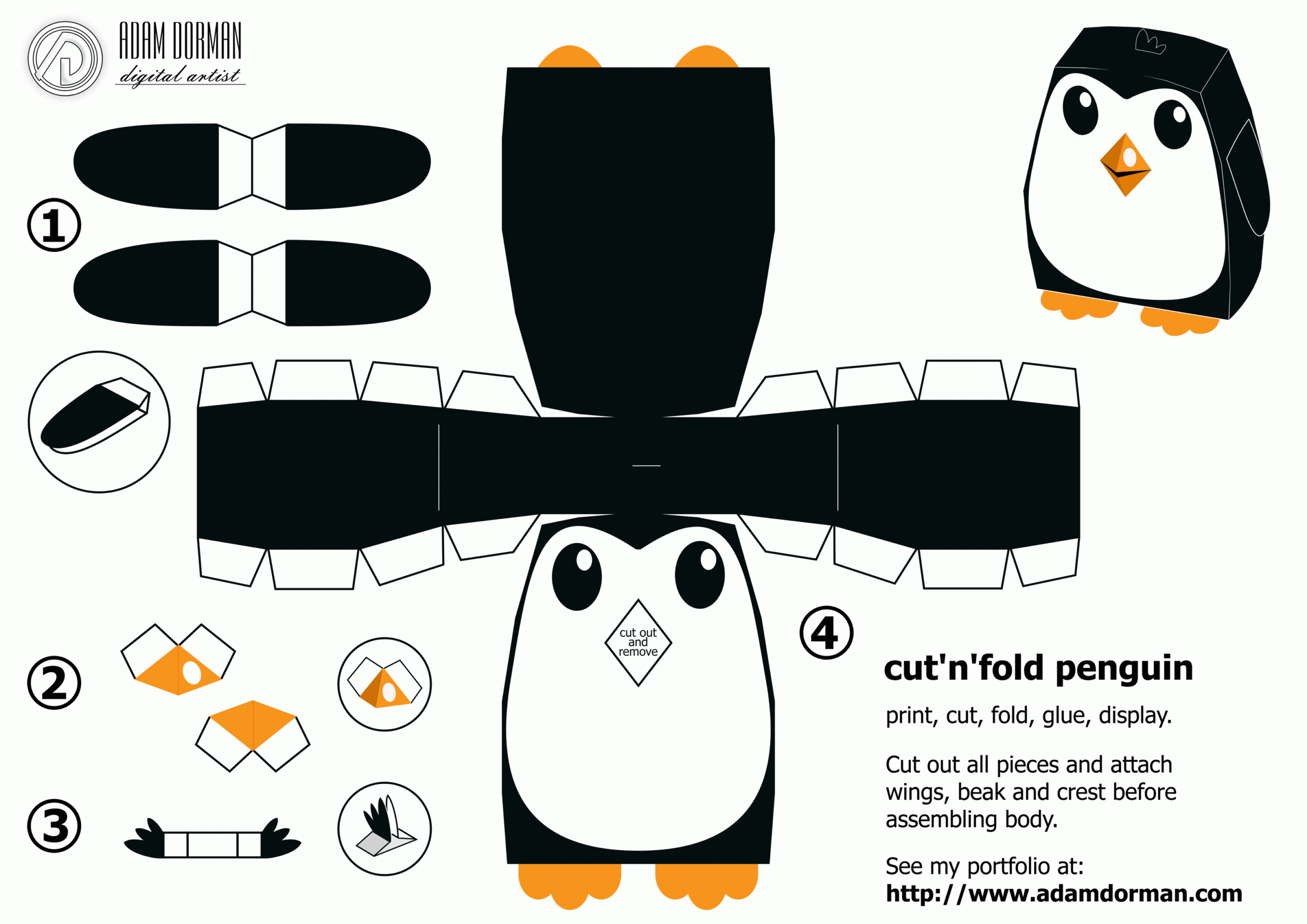 Free Cut N Fold 3D Penguin Model Papercraft Adam Dorman Digital Artist