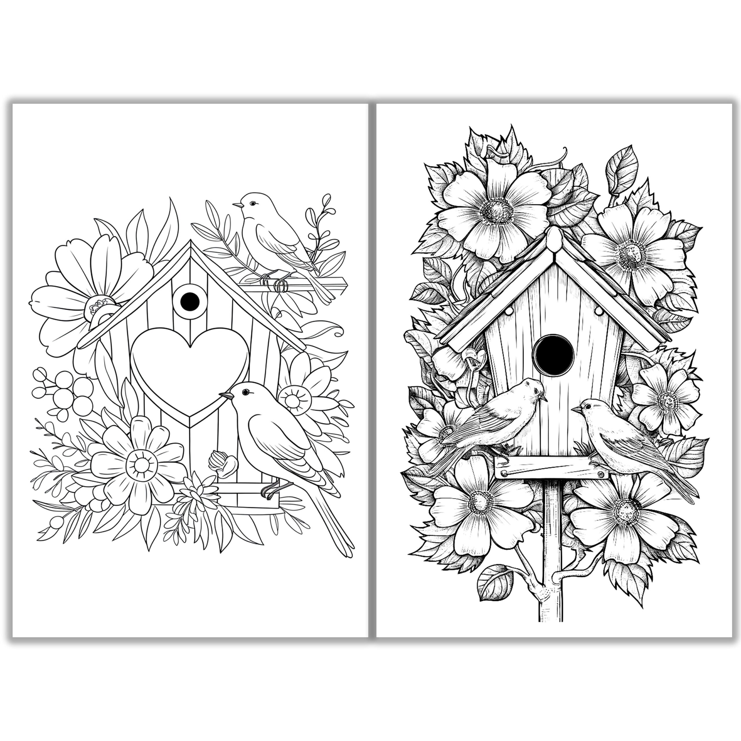 Printable Birdhouse Coloring Pages Fun Creative Designs For All Ages Etsy