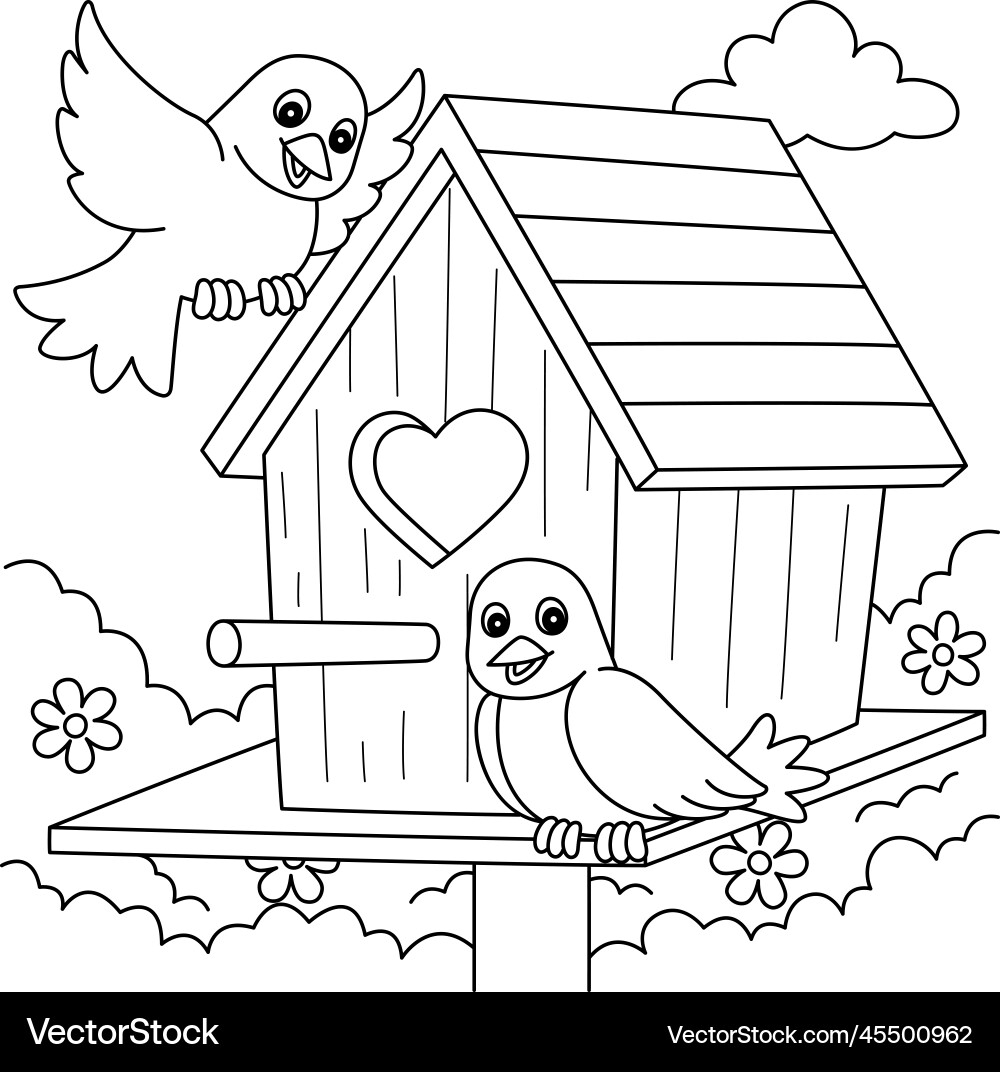 Spring Birdhouse Coloring Page For Kids Royalty Free Vector