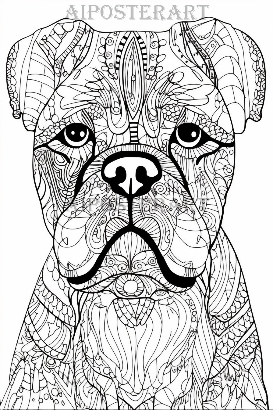 Boxer Dog Mandala Coloring Sheet For Adults Printable Dog Coloring Page Advanced Coloring High Res 1792×2688 Pixels Etsy