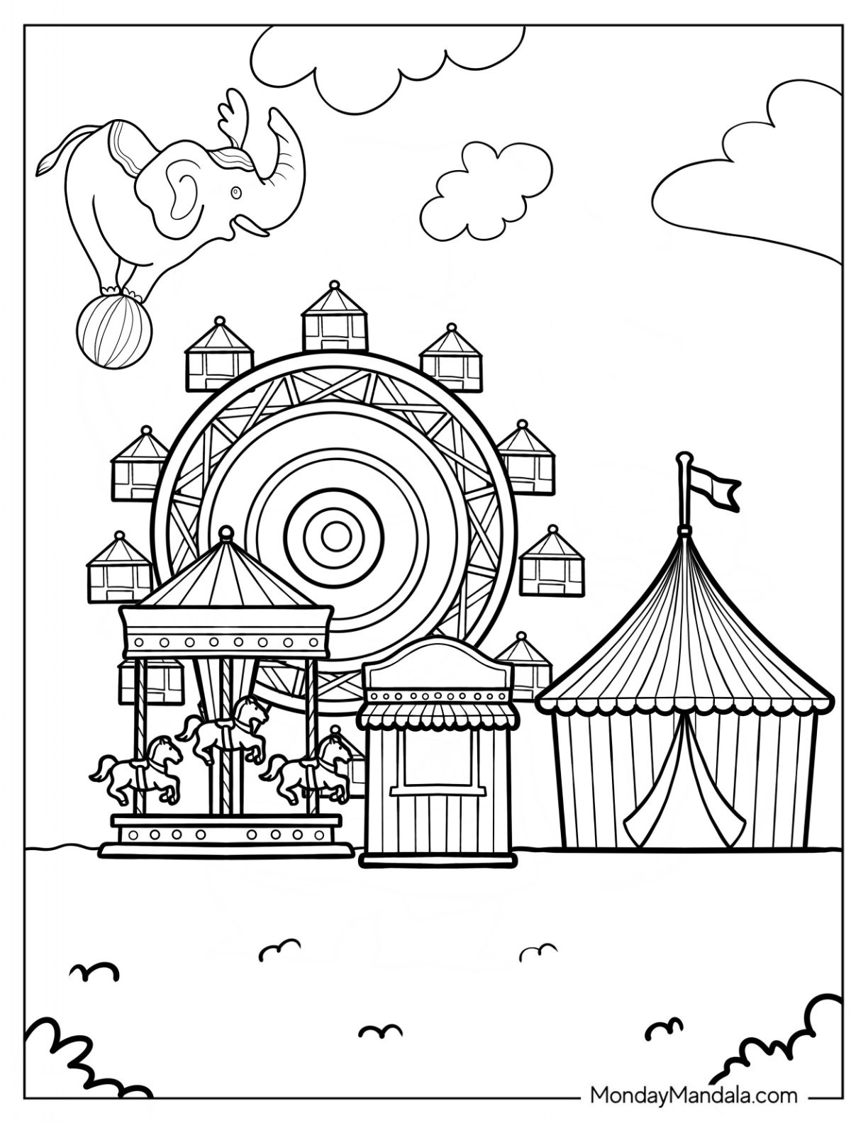 Printable Carnival Stuff Digital Download Circus Coloring Page Etsy