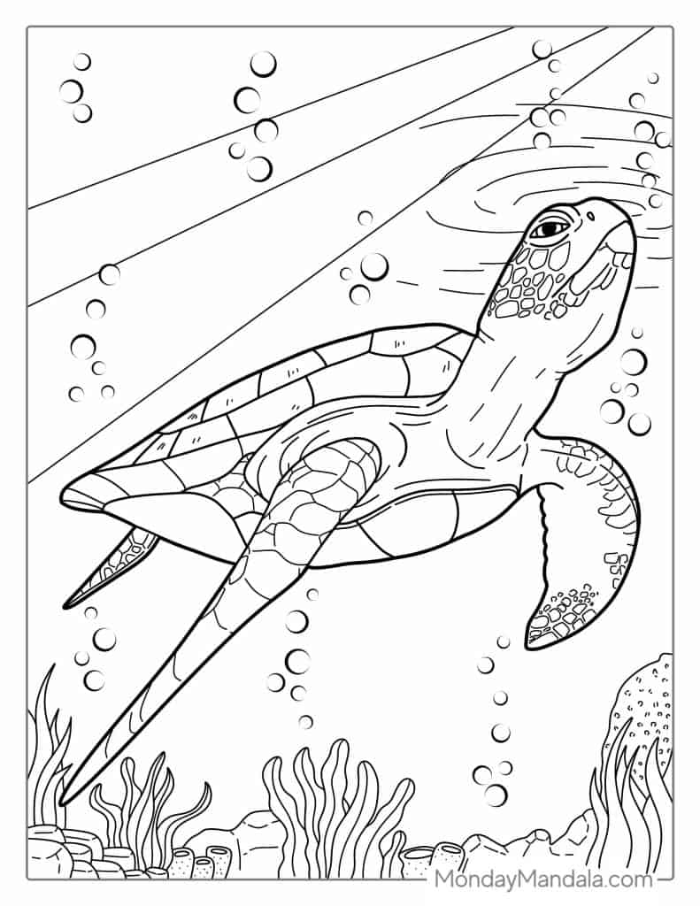 Advanced turtle coloring pages often feature elaborate shells, intricate patterns, and detailed backgrounds. From realistic depictions to whimsical designs, there’s a wide variety of options to choose from. You can unleash your creativity and experiment with different color combinations to bring these turtles to life.