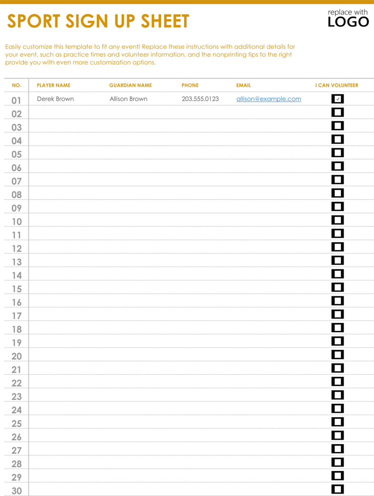Download and Print Sports Sign Up Sheet Printable Templates Listed below